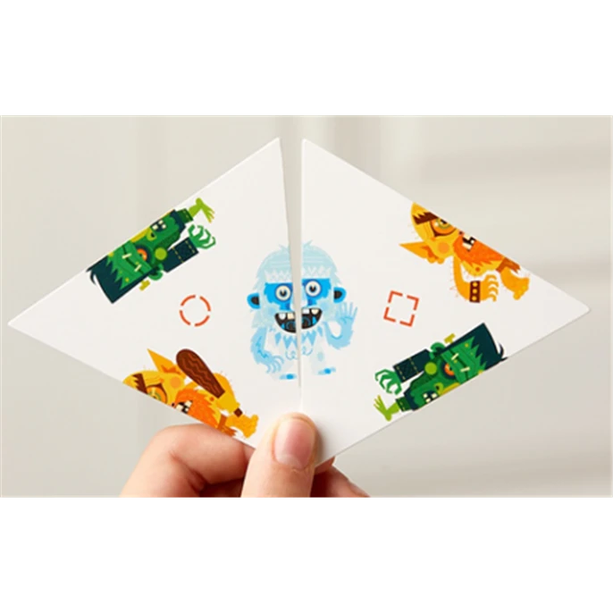 Chaque carte contient 3 moitiés d’illustration au recto et 3 au verso.