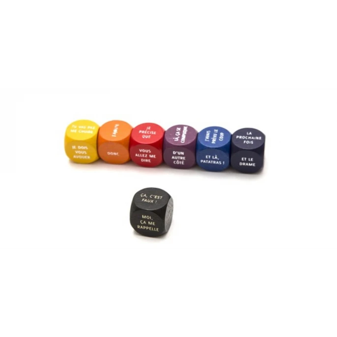 Délirant jeu d’invention d’histoires à base de dés qui imposent des phrases ou des mots à placer dans le récit dont le thème est souvent absurde.