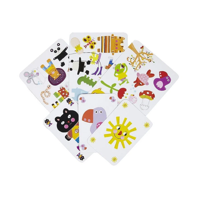 Rapidité et observation pour jouer une des cartes de sa main que l’on peut apercevoir sur l’illustration au centre de la table.
