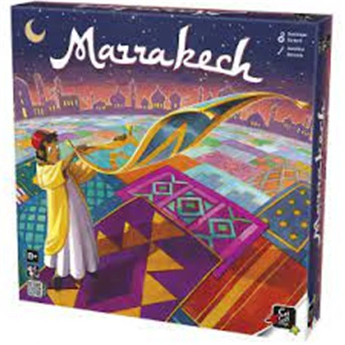 Marrakech est un jeu se déroulant dans un souk. Assam, le vendeur de tapis déposera les tapis des joueurs sur le jeu. A vous de lui indiquer où poser vos tapis afin que vous amassiez les pièces au détriment de vos adversaires.
