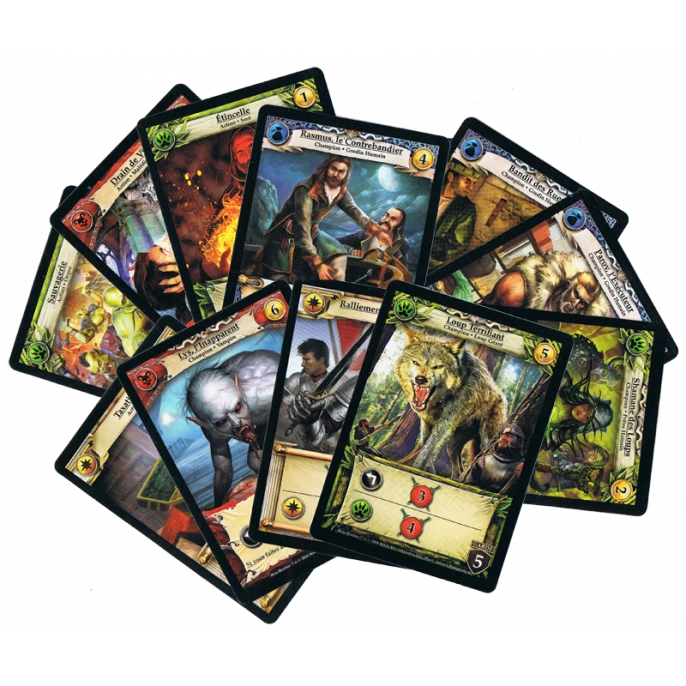 Développez votre paquet de cartes représentant votre champion et éliminez le champion adverse en jouant et en combinant les meilleures cartes de combat ou de développement.