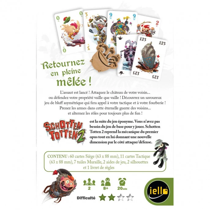 Renforcé par sa nouvelle dimension asymétrique, Schotten Totten 2 propose un jeu bien plus dense qui invite naturellement à enchaîner les parties en alternant les rôles. Plus tactique et plus intense, il invite à des affrontements d’un nouveau type tout en restant fidèle à son illustre héritage.