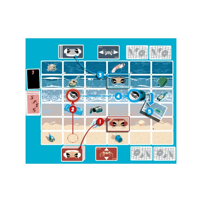 La Marche du Crabe est un jeu de déduction coopérative hyper immersif, dans lequel les deux crabes joueurs dépendront complètement l’un de l’autre… Sans parler ! Vous avez souvent vu des crabes discuter, vous ?