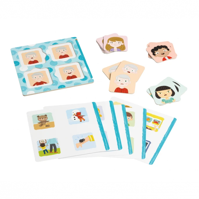 Loto des émotions est conçu pour aider les enfants de 1½ an à 4 ans à reconnaitre et à nommer des émotions. Il leur apprend aussi que tout le monde vit des émotions, que celles-ci ont différentes causes et qu’une même situation peut générer plusieurs émotions.