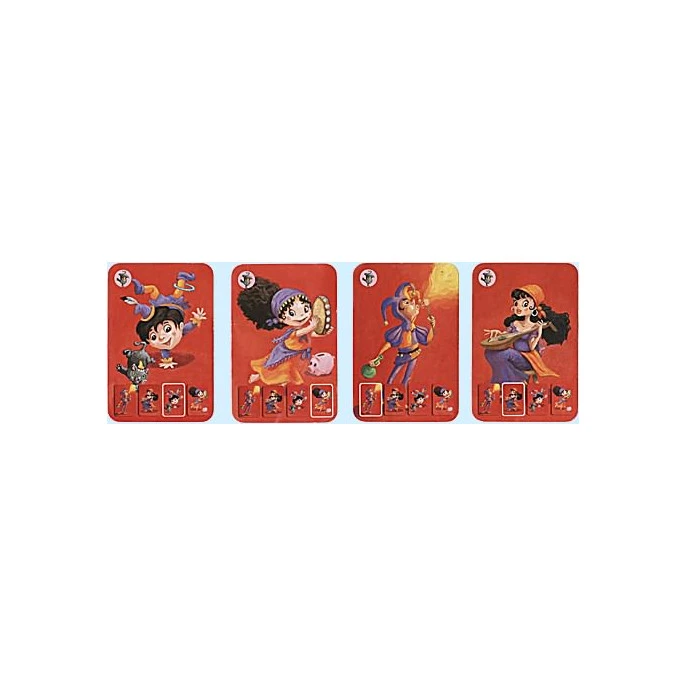 Jeu de 7 familles où 4 membres de la famille sont à retrouver. Adapté aux plus petits, il brille par la joliesse des illustrations « magiques ». Des rappels au bas de chaque cartes permettent de visualiser facilement chaque membre de chaque famille. Malin, non ?