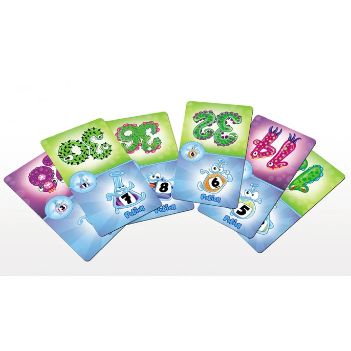 Dans Multipli Potion, vous incarnez un magicien dont le but est d’être le premier à capturer 5 monstres adverses. Pour cela, multipliez les nombres inscrits sur vos potions magiques pour obtenir le résultat correspondant à la valeur d’un monstre ennemi.