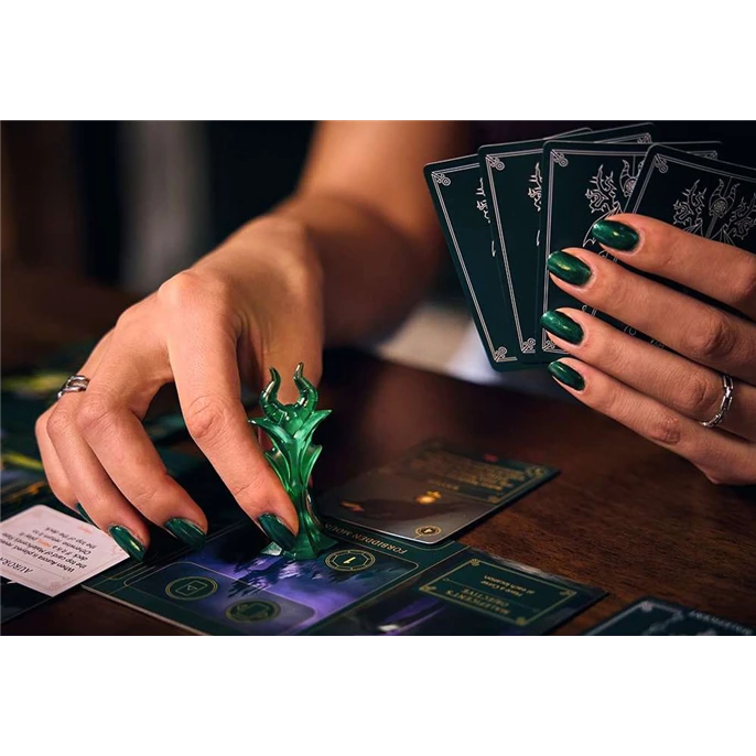 Entrez dans la peau de 4 célèbres Méchants de Disney : Maléfique, Capitaine Crochet, Ursula et Prince Jean ; et suivez votre propre objectif pour devenir le pire méchant de tous les temps ! Pour y parvenir, utilisez astucieusement vos capacités spéciales et tentez de ruiner les plans de vos adversaires. Tout comme dans les films, aucun Méchant ne se ressemble : chaque univers est fidèlement transposé grâce à des cartes propres à chaque Méchant et un objectif personnel. Que vous essayiez de maudire le royaume en tant que Maléfique ou de devenir le plus riche avec le Prince Jean, chaque partie sera différente, que ce soit au niveau de votre stratégie, des pouvoirs de vos cartes ou du but à atteindre. Mais que serait un Méchant sans sa némésis ? Chaque Méchant a un deck de cartes Fatalité que les autres joueurs utiliseront contre lui : des héros de Disney comme Ariel, Peter Pan ou encore Robin des bois viendront alors perturber vos plans, utilisant des objets, comme la poudre de fée et toutes sortes de ruses. Réveillez le Mal qui est en vous ! Suivez vos propres plans machiavéliques et devenez le plus grand méchant de Disney.