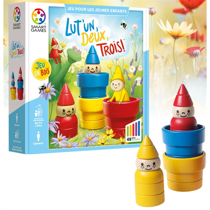 Trois lutins facétieux ont choisi votre jardin comme lieu de résidence. Trouverez-vous leur cachette ? Empilez, cachez, déplacez les petits personnages et leur pot pour résoudre les 48 défis diurnes et nocturnes de ce jeu en bois pensé pour des enfants de 3 à 7 ans. Ce jeu d’assemblage propose de manipuler les pièces de tailles différentes afin de reproduire les créations les plus surprenantes.