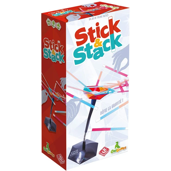 Gardez l’équilibre ! Stick & Stack mets votre dextérité à rude épreuve. Piochez un stick et posez-le sur la Tour en touchant les bonnes couleurs, mais attention, la Tour est capricieuse… et sur ressort ! Plus les sticks s’empilent, plus elle risque de pencher et si ça tombe, c’est perdu ! Compétitif, coopératif ou en mode défis, vous allez adorer déjouer les lois de la gravité.